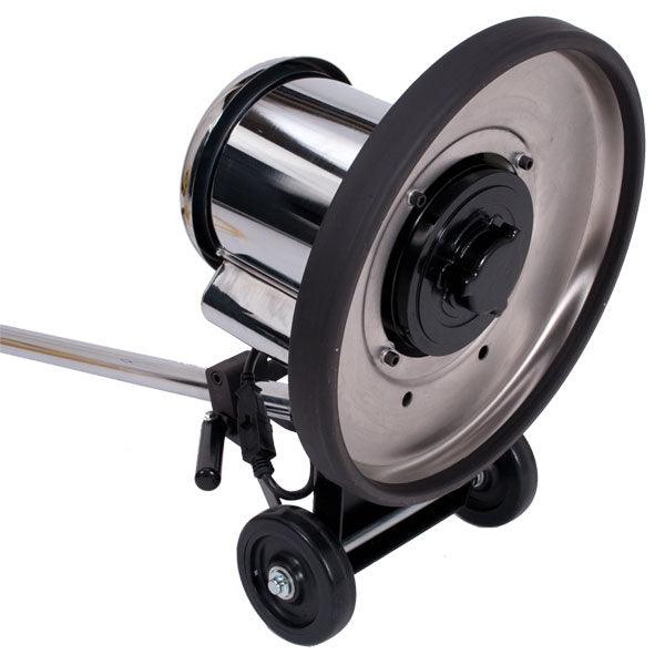 - 5" wide, non-marking wheels, adjustable, hand-resting handle for easy left-to-right maneuverability