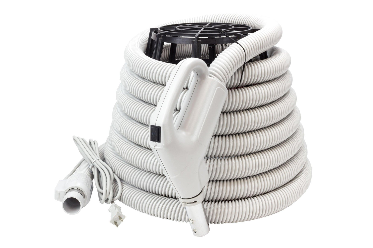 Electric Hose for Central Vacuum - 30' (9 m) - 1 1/4" (32 mm) dia - Grey - Gas Pump Handle - On/Off Button - Power Nozzle Compatible - Button Lock - Plastiflex SZ130114030BCU