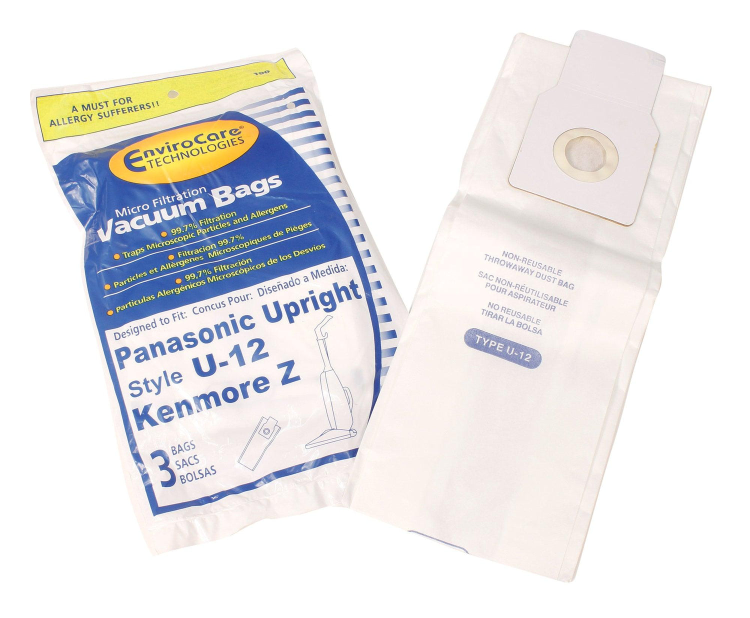 Sac microfiltre pour aspirateur vertical Panasonic Type U-12 / Kenmore Z - Paquet de 3 sacs - Envirocare 190