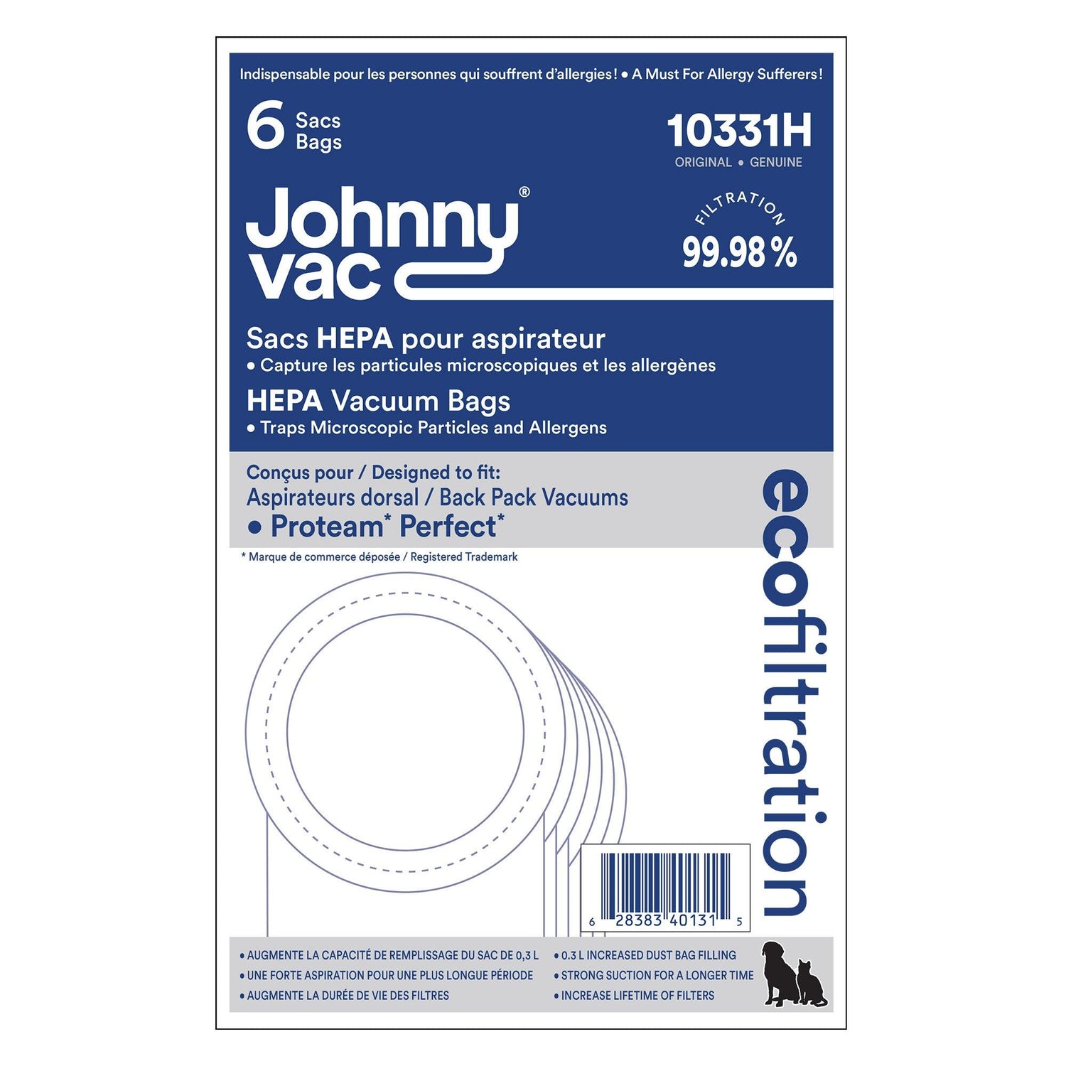 Microfilter Hepa Vacuum Bag for Back Pack Proteam Perfect - Pack of 6 Bags