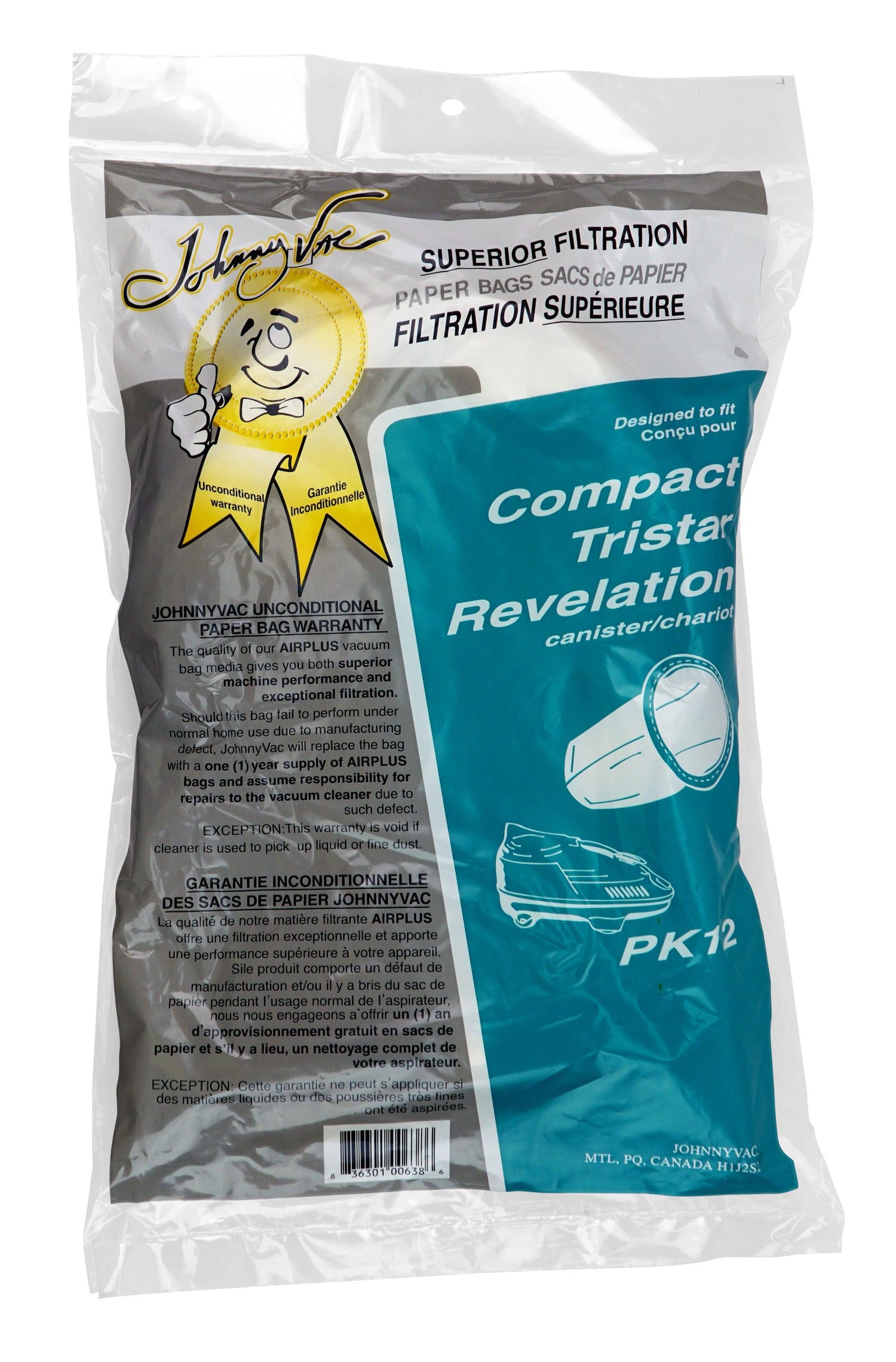 Paper Vacuum Bag for Compact, Tristar and Revelation Canister Vacuum Cleaner - Pack of 12 Bags - Envirocare 738JV