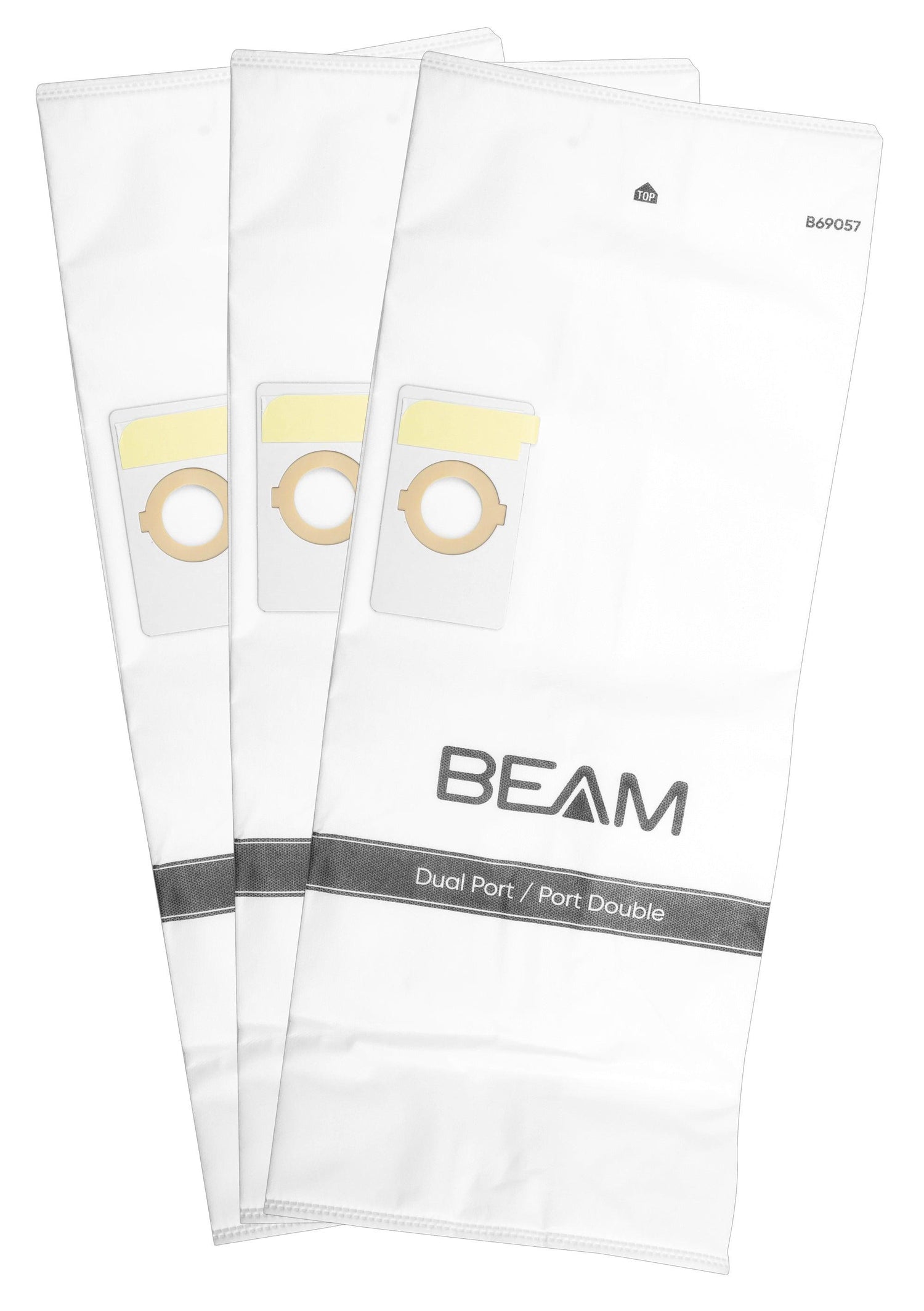 HEPA Microfilter Bag for Beam B69057 Central Vacuum Cleaners with Two Openings - Pack of 3 Bags