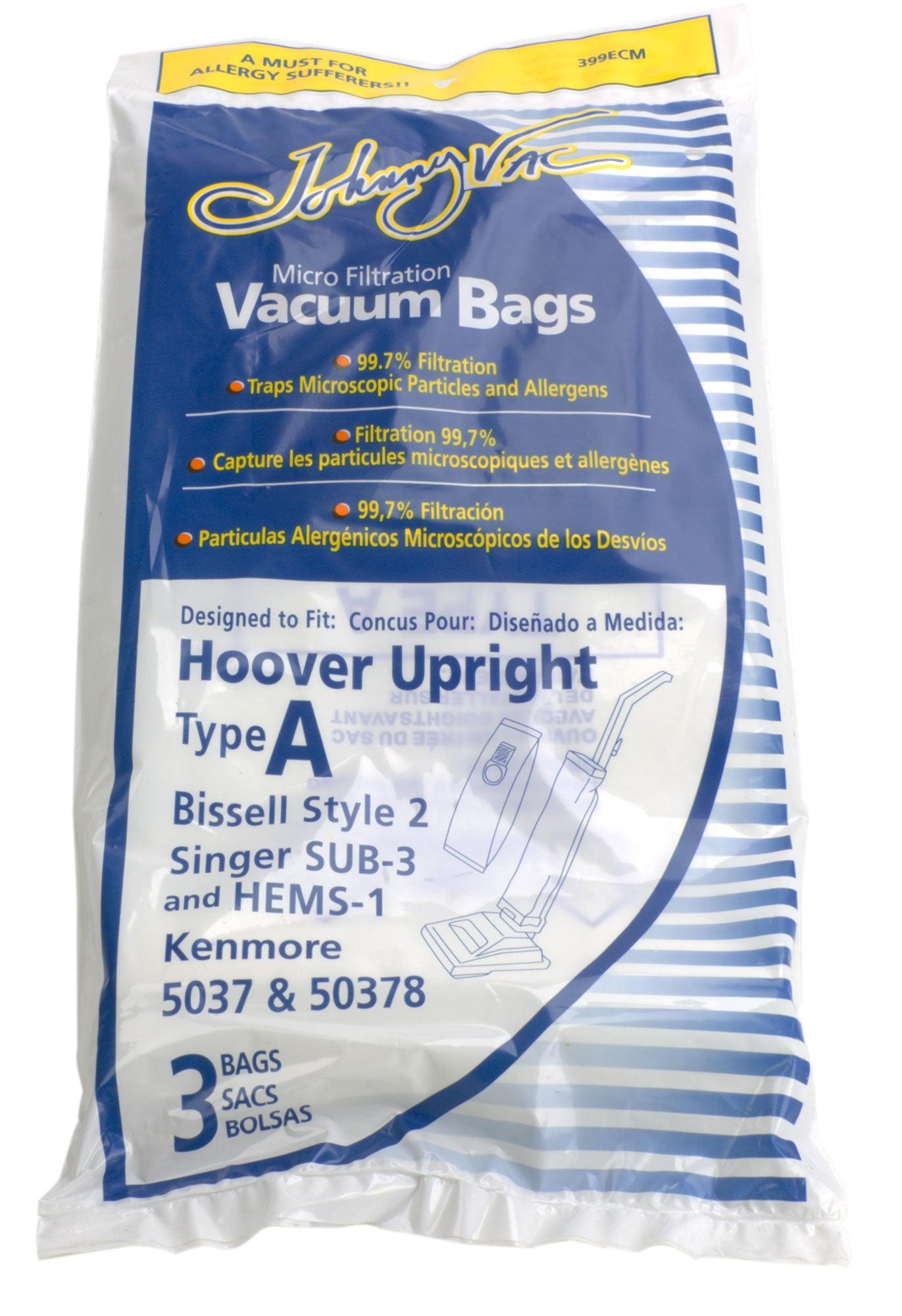 Microfilter Bag for Hoover Type A, Bissell Style 2, Singer SUB-3, HEMS-1 et Kenmore 5037/50378 Vacuum - Pack of 3 Bags - Envirocare 809
