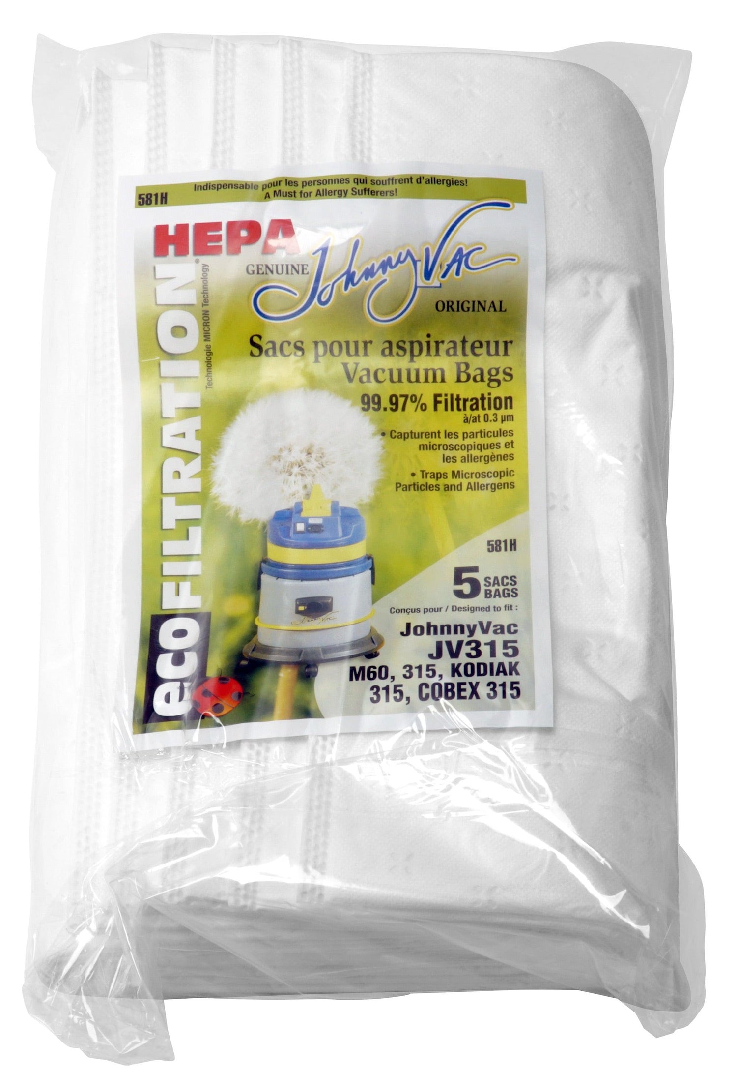 HEPA Microfilter Bag for Johnny Vac JV315 et M60, 315 Kodiak 315, Cobex 315 Vacuum - Pack of 5 Bags