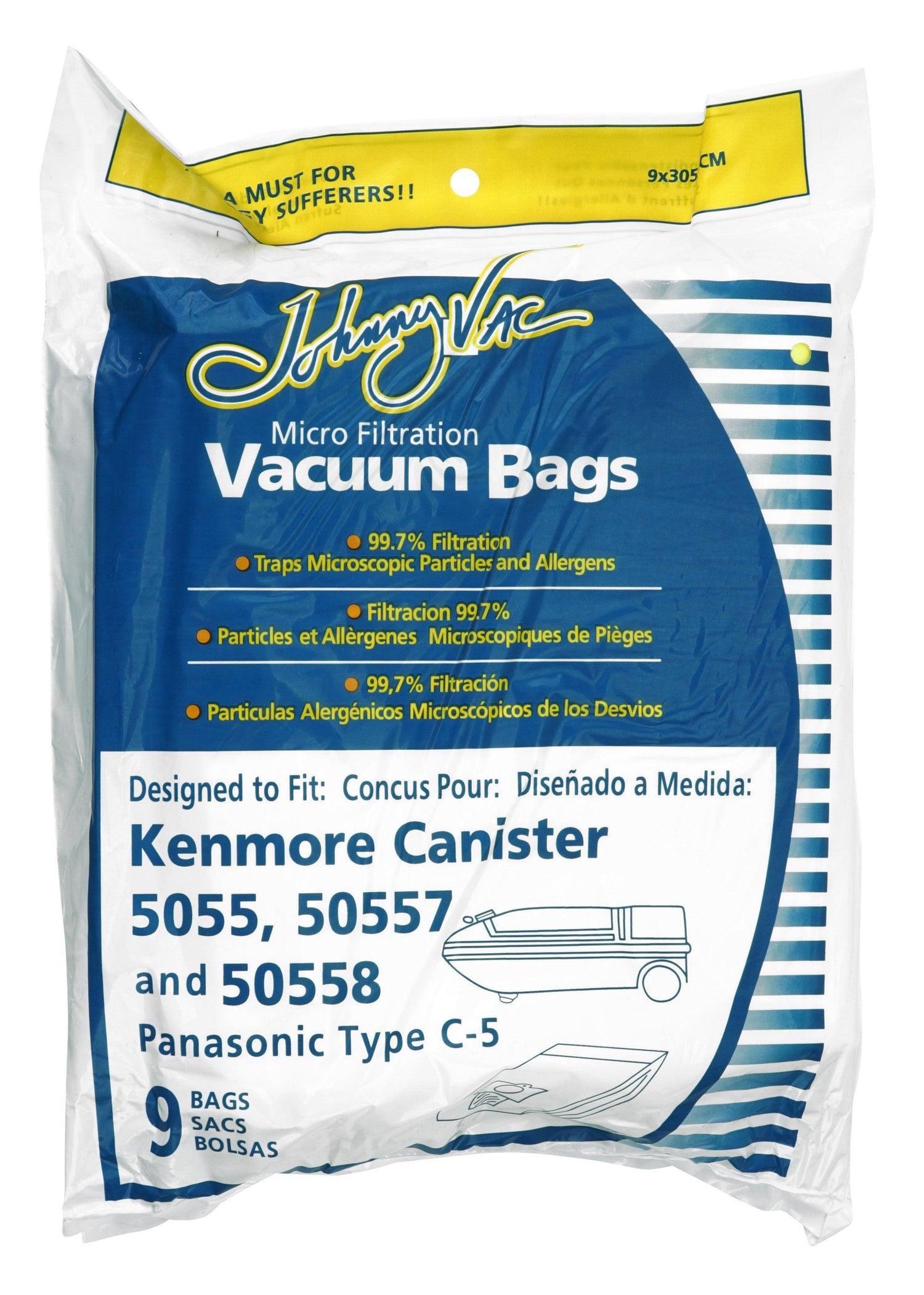 Microfilter Bag for Kenmore 5055, 50557 and 50558, Panasonic Type C-5 Canister Vacuum - Pack of 9 Bags - Envirocare 137-9