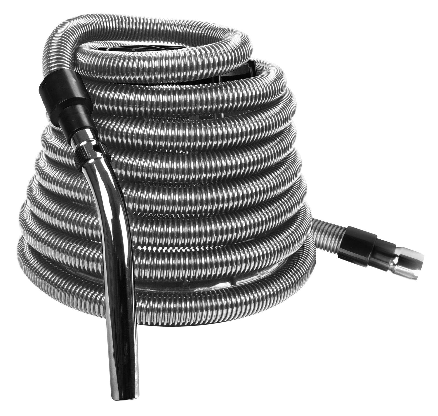 Flexible Hose for Central Vacuum - 40' (12,19 m) Long - with Metal Handle - Silver