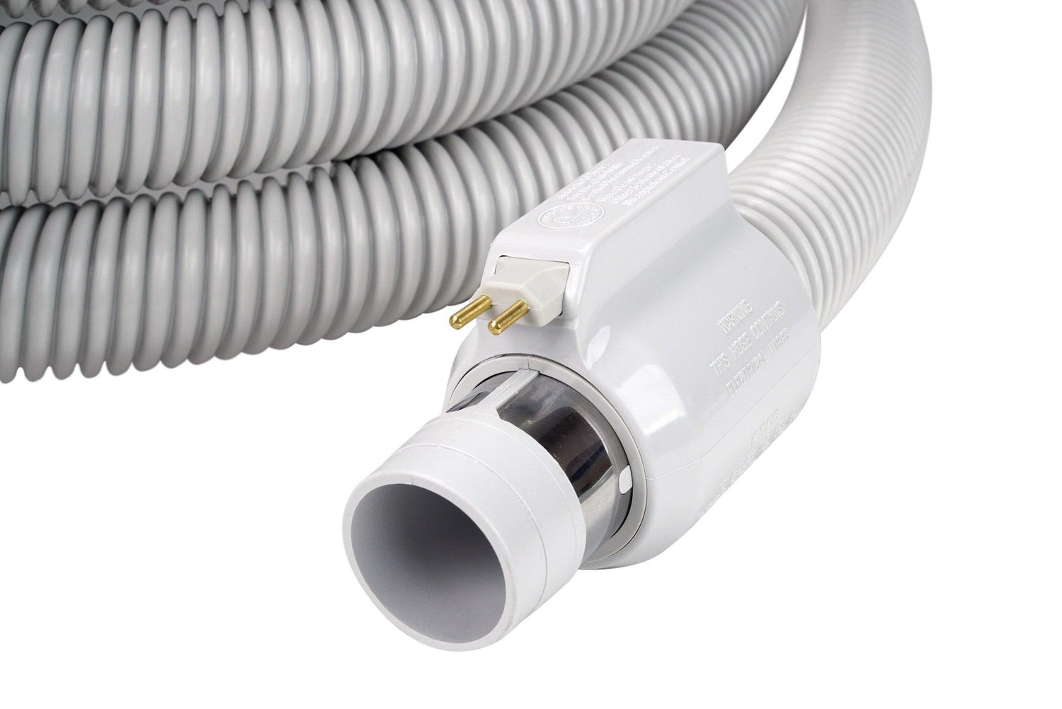 Electric Hose for Central Vacuum - 35' (10 m) - 1 1/4" (32 mm) dia - Grey - Gas Pump Handle - On/Off Button - Power Nozzle Compatible - Button Lock - Super Valve - Plastiflex SZ130114035BDU
