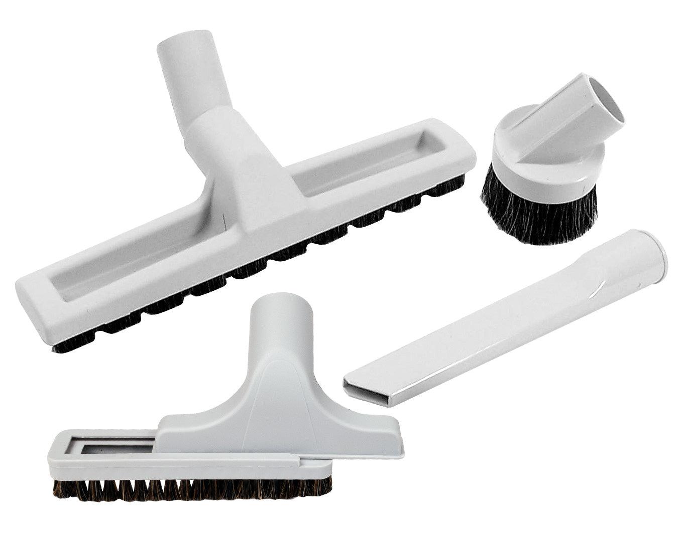 Central Vacuum Brush Kit - Floor Brush on Wheels - Dusting Brush - Upholstery Brush - Crevice Tool - Grey