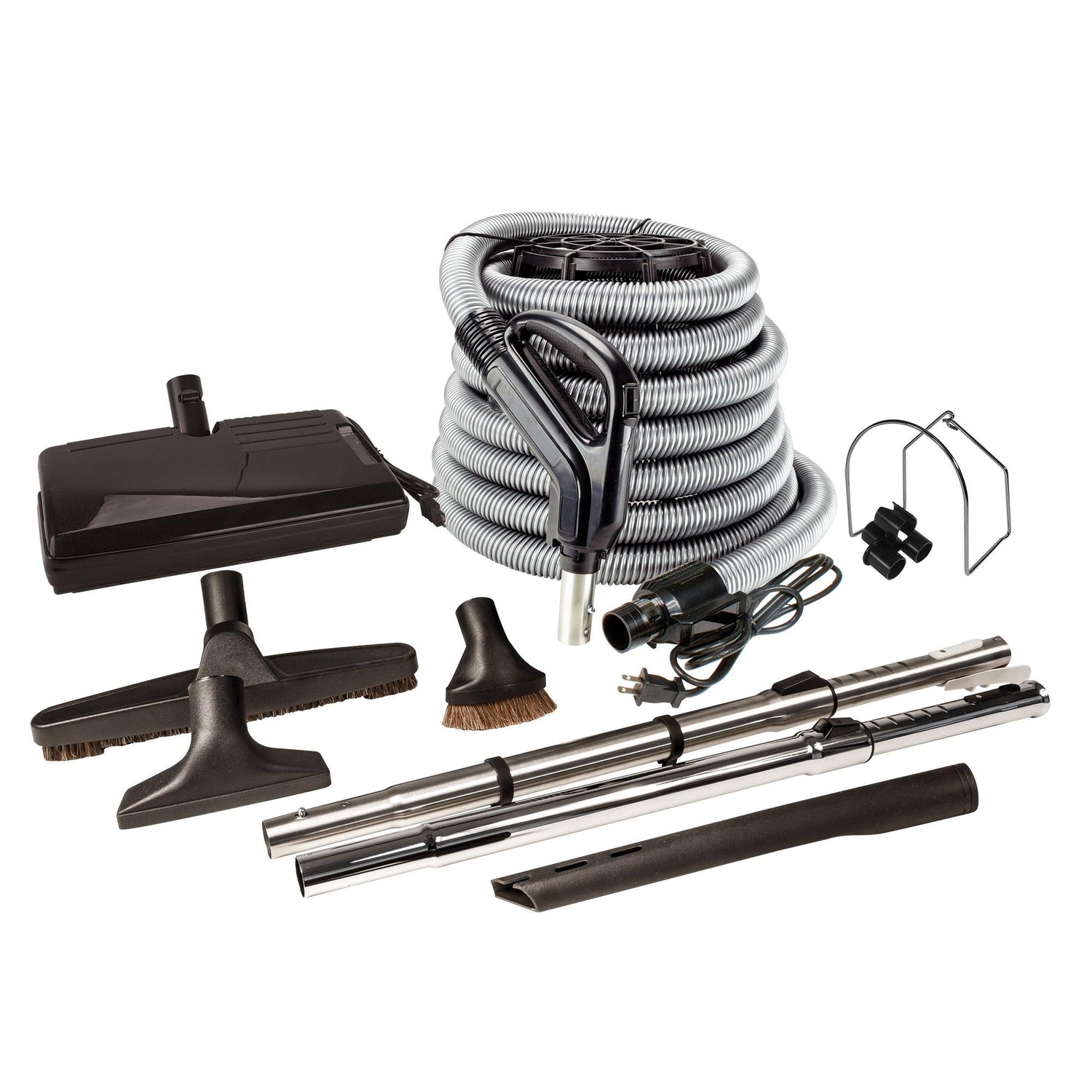 Central Vacuum Kit - 30' (9 m) Electrical Hose - Sweep n Groom Power Nozzle - Floor Brush - Dusting Brush - Upholstery Brush - Crevice Tool - 2 Telescopic Wands - Hose and Tools Hangers - Black